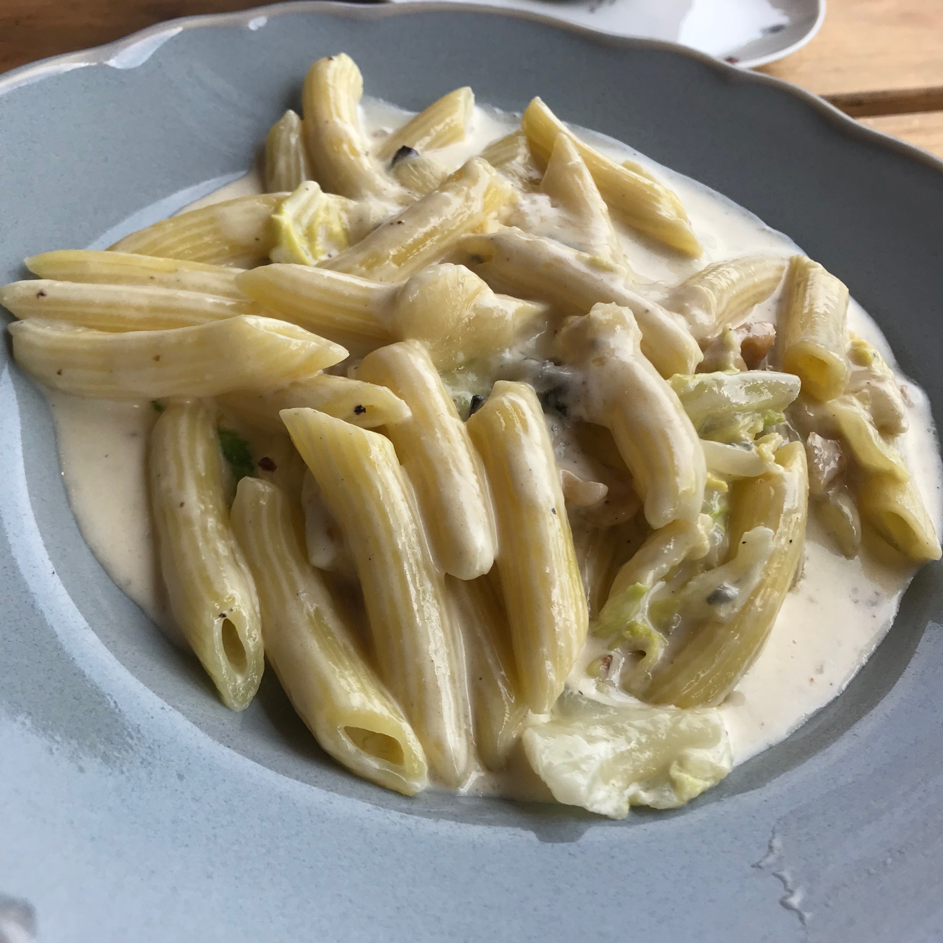 ペンネと春キャベツがベースなんだが、胡桃がはいることで、食感に楽しみが出るし、ほのかなロースト香もアクセントになる。胡桃は、まだまだしっかりあるので、今度はペンネにいれてみよう。